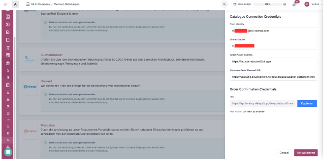 Damit du Conrad ganz einfach aus Hivebuy heraus nutzen kannst, musst du einmalig dein Conrad mit Hivebuy verbinden. Nur die folgenden Rollen haben Zugang zu diesem Bereich und seinen Funktionen: Admin und Managing Director.