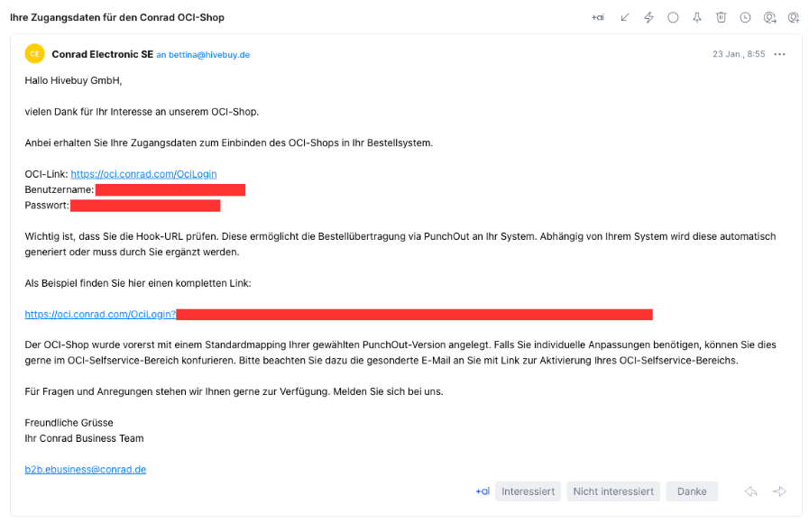 OCI-Zugang beantragen (Achtung: Conrad versendet hier keine Erfolgsmeldung)